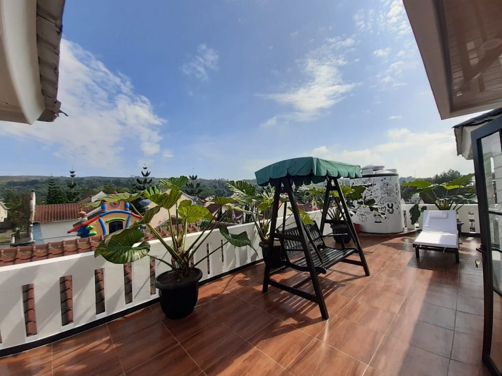 Selanjutnya, jika kamu ingin momen romantis, villa 1 kamar dengan balkon dan view pegunungan sangat cocok.